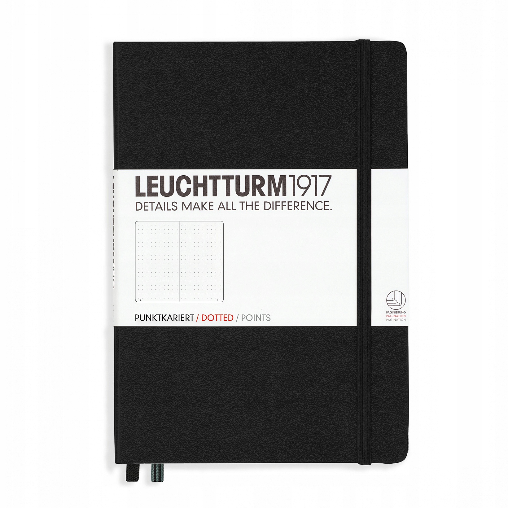 Notatniki Leuchtturm1917 to wysokiej klasy produkt w rozmiarze A5 i twardej oprawie. Papier ma odcień kości słoniowej, jest bezkwasowy i bez optycznych wybielaczy, idealny do pisania piórem. Dodatkowym atutem jest szyty grzbiet umożliwiający rozłożenie notatnika na płasko. Nowoczesny design, elegancki minimalizm, solidne wykonanie, zamykanie na gumkę - to wszystko powoduje, że LEUCHTTURM1917 jest marką rozpoznawalną, cieszącą się olbrzymim powodzeniem.