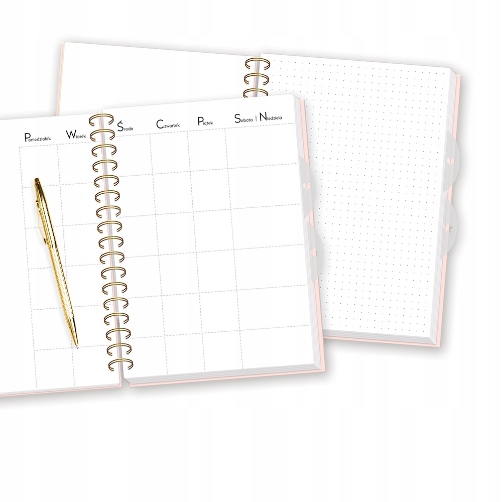 Ewenementem tych planerów są kartki w kropki – pomaga to w szybszym i estetyczniejszym rozrysowaniu schematów organizacji przestrzeni.