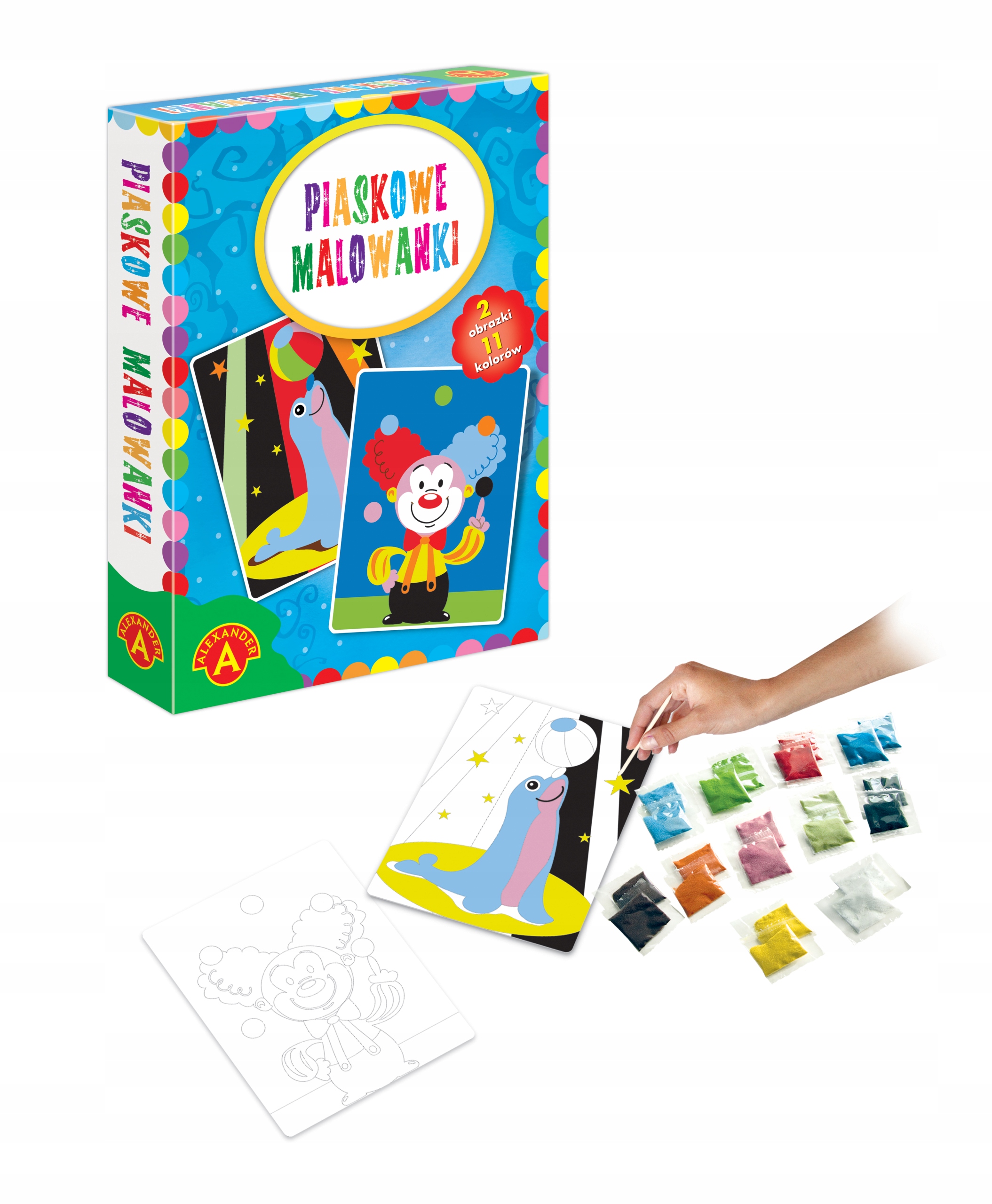 Uwielbiana przez dzieci, artystyczna zabawa malowania piaskiem, polegająca na odsłanianiu kolejno poszczególnych, naciętych elementów obrazka, tak by odkryć klejącą powierzchnię. Odsłonięte elementy posypuje się piaskiem, w kolorze zgodnym ze wzorem lub według własnej wyobraźni, tworząc piękną ilustrację.