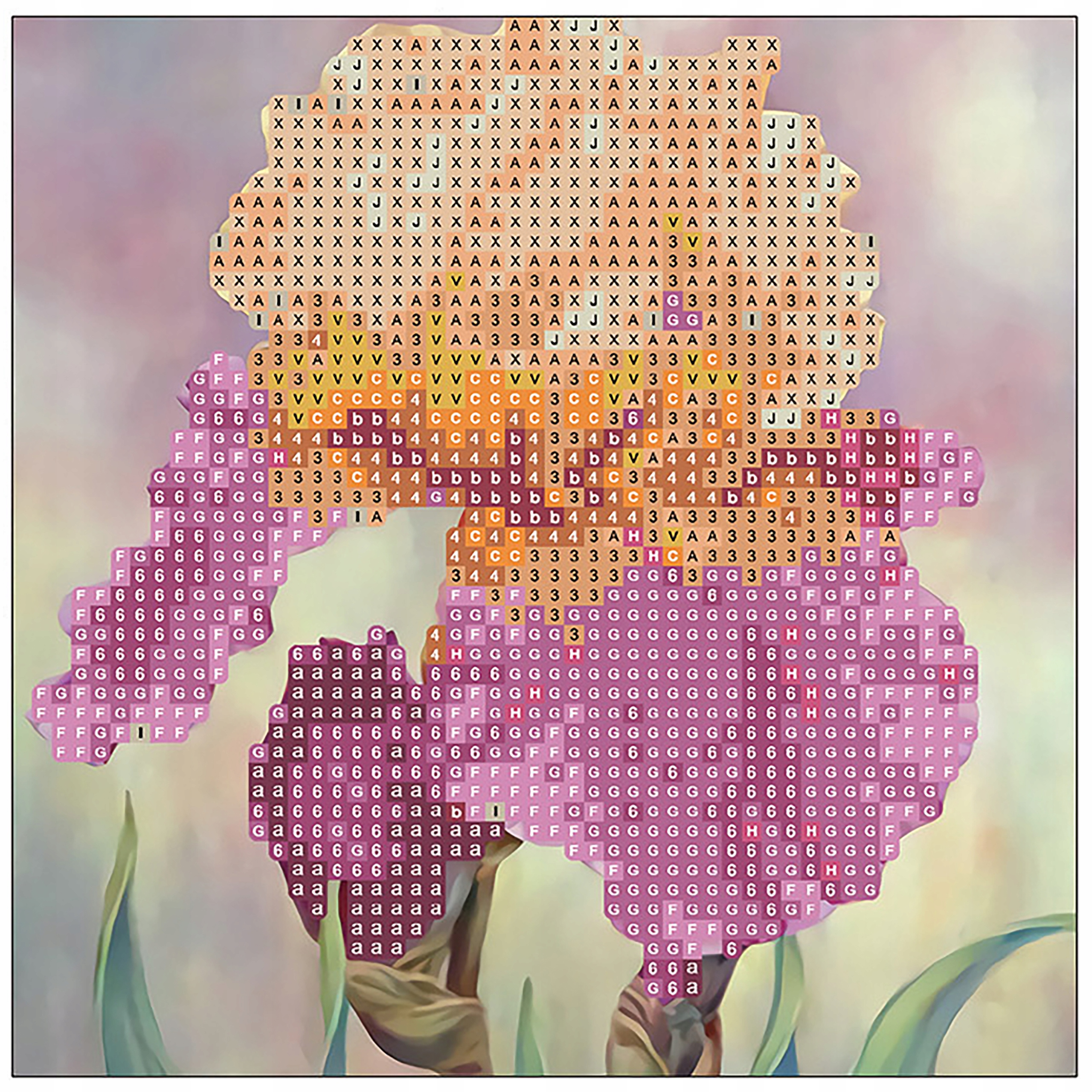 3. Wybierz diamenciki, które będziesz wyklejać. Znajdź na odkrytej części płótna odpowiednie symbole i numery. Wsyp do plastikowego pojemnika porcję wybranego koloru kryształków.