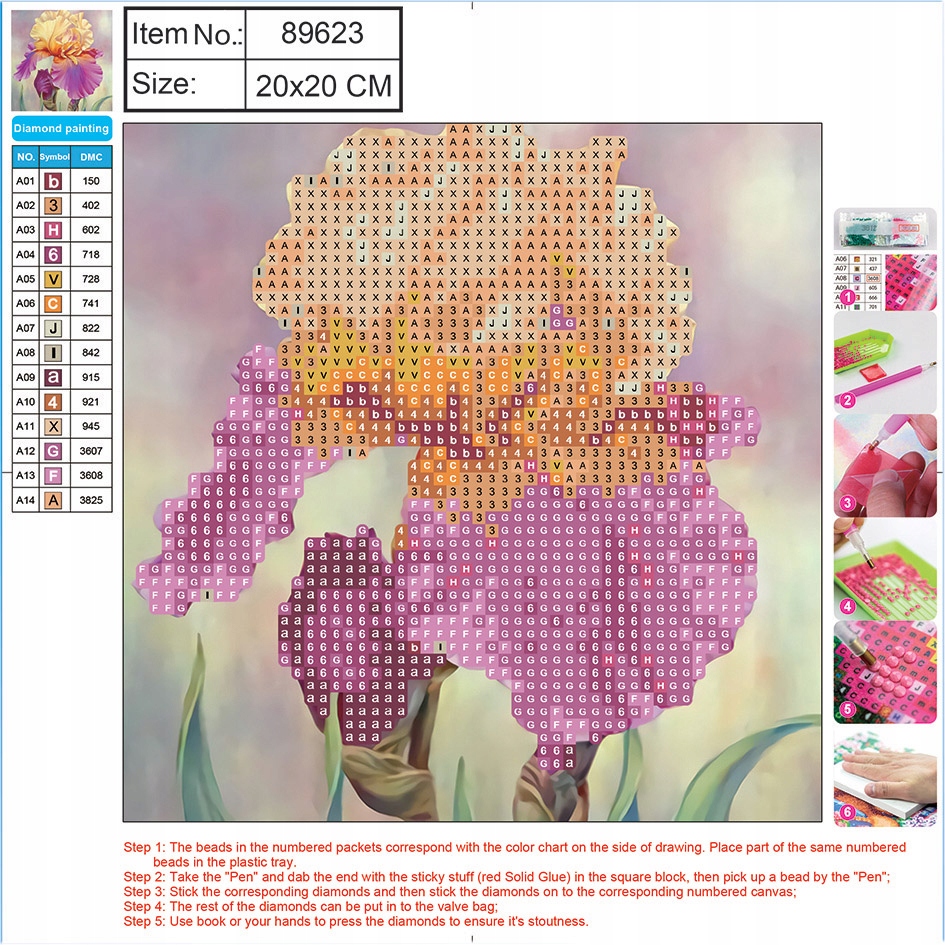 1. Przygotuj stanowisko do pracy i rozpakuj swój zestaw do diamond paintingu. Przed użyciem płótno należy wyprostować przy użyciu książek lub innego ciężkiego przedmiotu