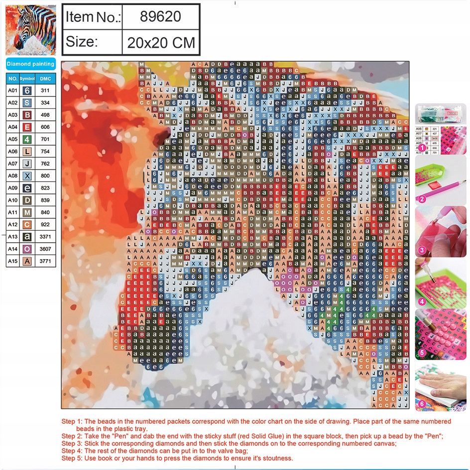 1. Przygotuj stanowisko do pracy i rozpakuj swój zestaw do diamond paintingu. Przed użyciem płótno należy wyprostować przy użyciu książek lub innego ciężkiego przedmiotu