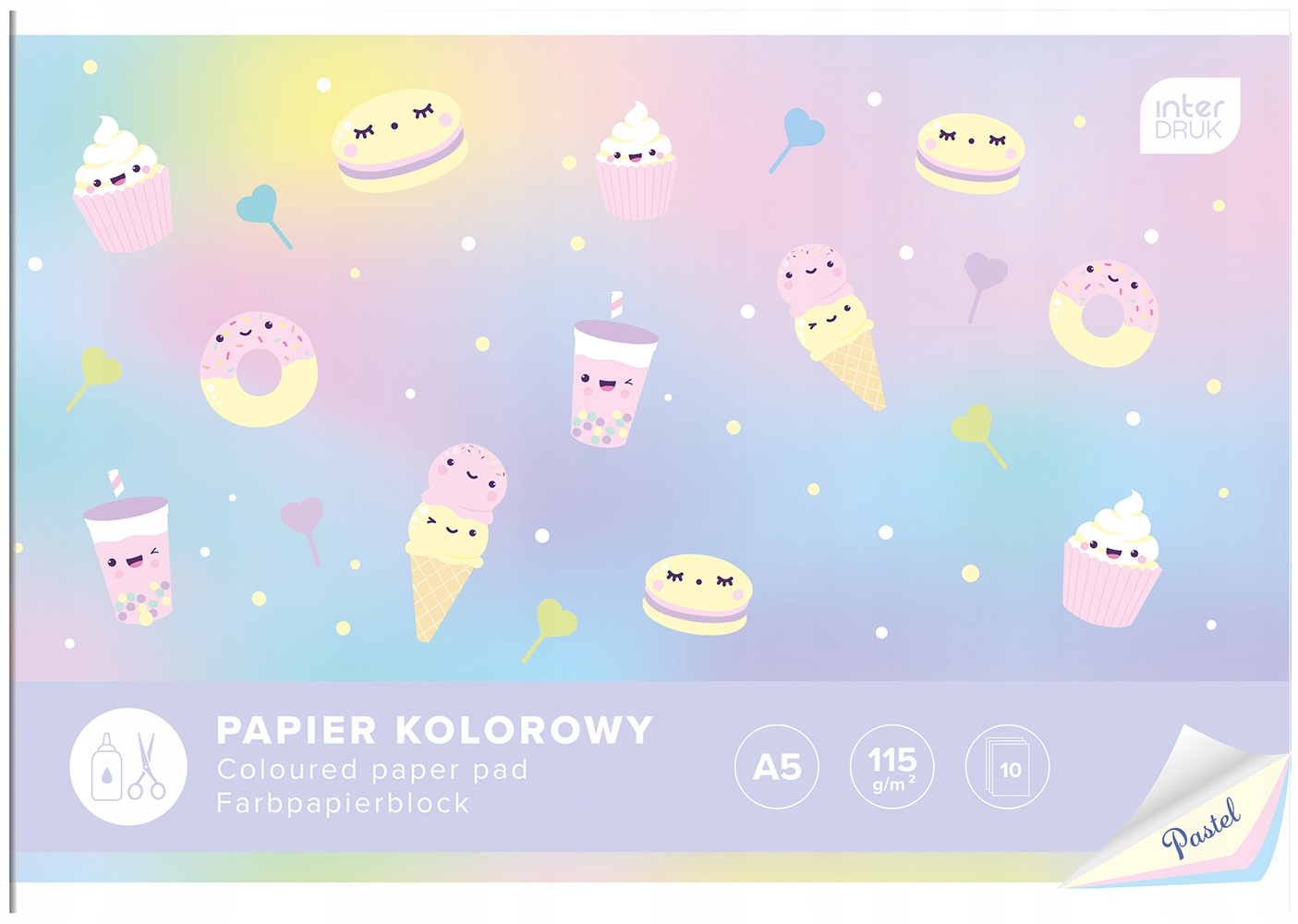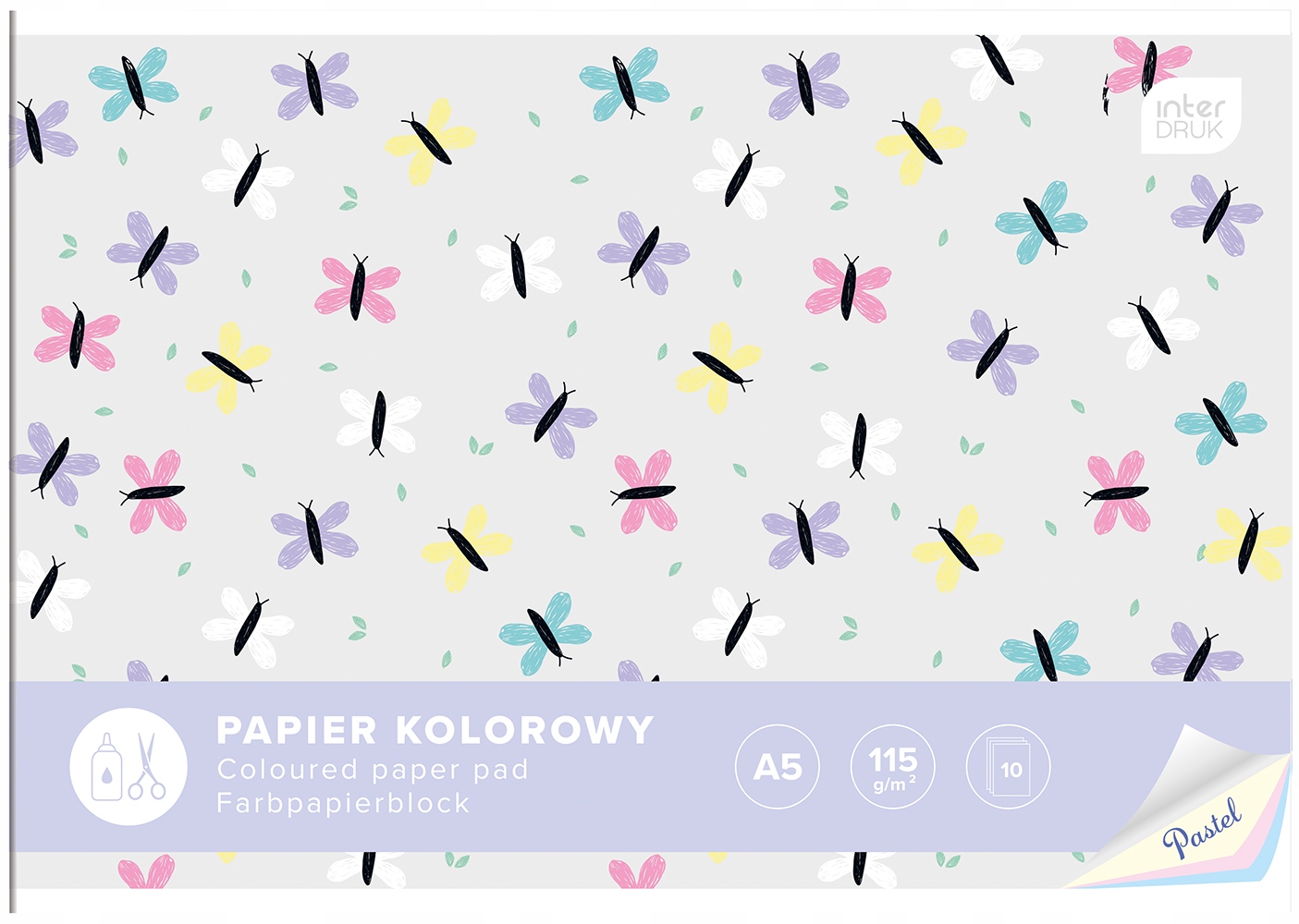 Zeszyt z kolorowymi kartkami do wykonywania różnego rodzaju prac plastycznych, do wycinania różnego rodzaju wzorków, jak i do tworzenia kolorowego origami.